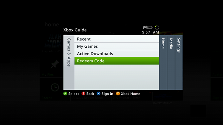 1. 請於 Xbox 市集的畫面中間選取 [兌換代碼]。